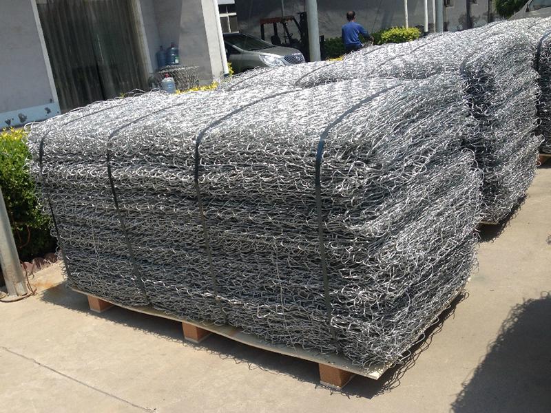 拧花格宾网是由高抗腐蚀、高强度、具有延展性的低碳钢丝或者包覆PVC的以上钢丝使用机械编织而成,根据ASTMA975和EN10223标准,所使用的低碳钢丝直径根据工程设计要求而不同。一般介于2.0-4.0mm之间,钢丝的抗拉强度不少于38kg/m2,金属镀层重量一般高于245g/m2拧花石笼网拧花格宾网片的边缘线直径一般要大于网线直径。其双线绞合部分的长度不得小于50mm.以保证绞合部分钢丝的金属镀层和PVC镀层不受破坏。
